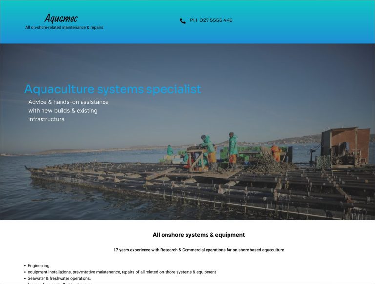 The client wanted a simple one-page website which would clearly and dramatically show his line of marine work as an aquaculture systems specialist, as well as providing his contact details.
