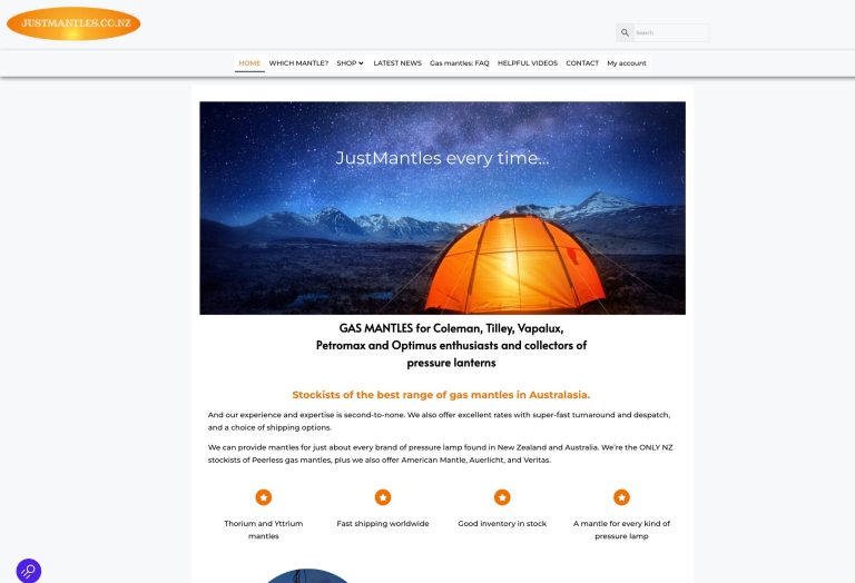 An online ecommerce site selling Tilley lamps and mantles for campers and enthusiasts and collectors of pressure lanterns. Complex shipping options for the varios products had to auto-configure for customers ordering from different countries.