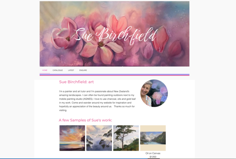 A painter, Sue wanted a friendly site with a fresh look, that would clearly show her range of styles and subjects. She also wanted a catalogue with images in specific clickable categories. Done!