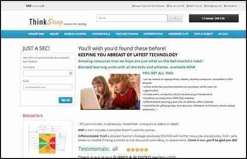 An online ecommerce site for a company selling educational resources; needed various subcategories to drop-down in menu, and a “Sign Me Up” form for newsletter subscribers. Various sections, from “Best Sellers”, to “You recently viewed…”