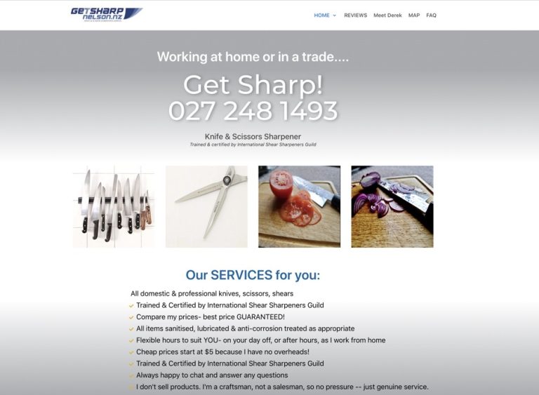 A one-man small business wanting a clean easy-to-use website that clearly and quickly reflects his trade of tool-sharpening.