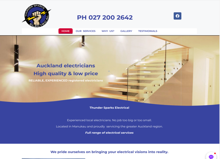 A busy Auckland region electricial company wanting a bright, professional site showcasing their skills and also making it easy for potential clients to contact them by phone or via Messenger.